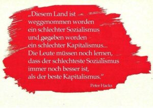 Heute ist der 07.10.2021, einst ein Feiertag in einer Republik, an welche es lohnt sich zu erinnern, allein schon weil sie eine Alternative zum gegenwärtigen gesellschaftlichen System darstellte. Die DDR stand für Frieden und gesellschaftlichen Fortschritt, und gelegentlich sich selbst im Weg. Aber so ist es, wenn neue Wege beschritten werden, wenn neues ausprobiert, da werden auch Fehler gemacht, geht es auch mal in eine Sackgasse und nicht zu vergessen, man war nicht ohne Feind. Die DDR als Staat gibt es schon lange nicht mehr, trotzdem wird sie von ihren Gegnern heute intensiver bekämpft als zuvor, besonders gut zu beobachten in Zeiten sich beschleunigt zuspitzender gesellschaftliche Widersprüche. Dabei geht es nicht um die DDR, wie schon geschrieben, diese hat vor vielen Jahren aufgehört als Staat zu existieren, sondern es geht um die Alternative, welche mit dieser verbunden, es geht um den Sozialismus als die einzige humanistische Alternative zum System des Kapitals, welches sein eigentliches Wesen gegenwärtig besonders intensiv offenbart.